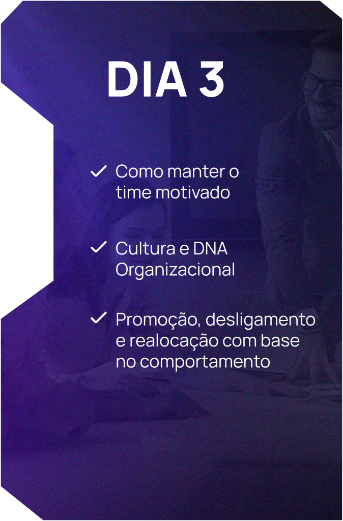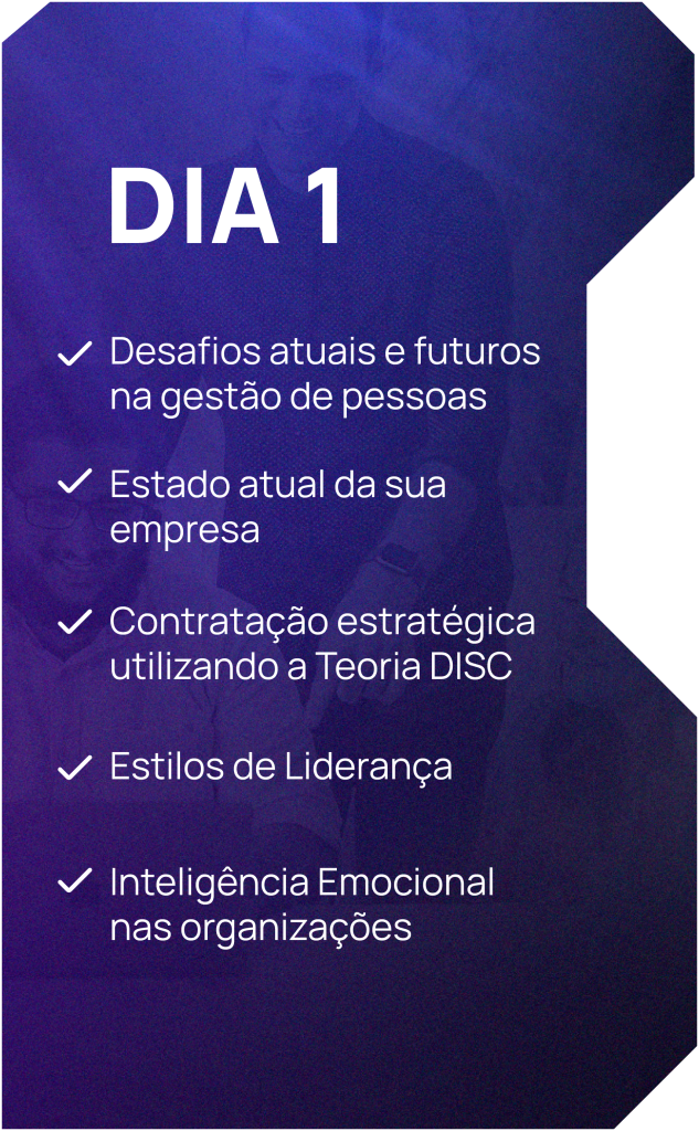 Através de metodologias testadas e comprovadas que utilizamos, formamos especialistas em comportamento humano capazes de criar estratégias eficazes de como gerir pessoas nas empresas, engajar equipes de formas genuínas e criar uma cultura forte em seu negócio.